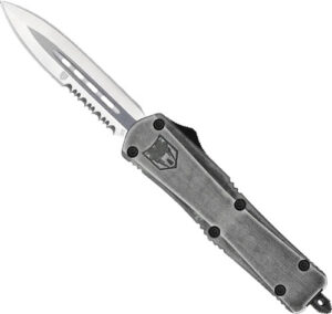 CobraTec Knives CTEGRYM390DNS Enforcer 3.25″ OTF Drop Point Plain M390 Steel Blade/Gray Aluminum Handle