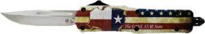 Templar Knife MZTX321 Premium Weighted Texan Slim 3.16″ OTF Drop Point Plain Black Oxide Stonewashed D2 Steel Blade, 4.93″ Red/White/Blue w/”The LONE STAR State” Aluminum Zinc Alloy Handle