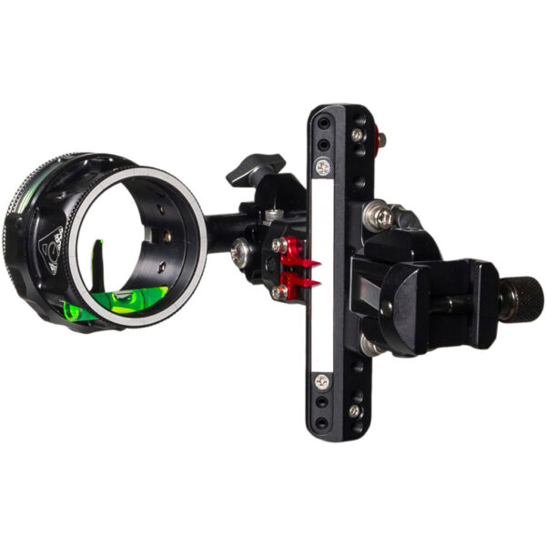 Slider sight with rapid adjust knob and quick release that slides the sight up and down along precision made, whisper quiet gear teeth for precise fine tuned yardage settings. An adjustable dead stop allows you to quickly access 20 yards or any other yardage setting, but works extremely well when used with the sight’s two individually adjustable pointers. Sight also features our super-rugged double-sided metal sight tapes that includes 8 metal tapes with 16 scales. The first, second and third axis adjustments are each true, easily, and independently adjustable. The quick adjust Rheostate cover dims the fiber optic pins from star bursting in direct sunlight. Comes with AV-41 scope has a 1 3/4″ or 41MM inside diameter with crosshair works well in hunting blinds and has a torque indicator on front of scope to help identify if your bow is canted to one side or the other. Fire pin equipped tough CNC machined pins. This sight has CCT technology aiming ring at same depth as sight pins, designed for greater accuracy when viewed slightly off center. The Picatinny in-line sight mounts your sight to the front of your bow for better balance and create a super strong and durable connection so functional is the ability to adjust the sight in or out to one of three positions to match the peep sight to the scope housing or up or down to one of three positions on the bow riser for enhanced elevation adjustments. Adjustments with each picatinny connection can be done with one screw and snugged down slightly with a hex key wrench.