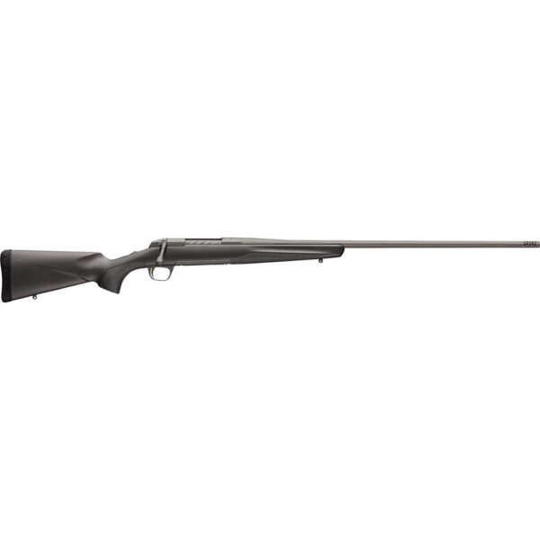 The Browning X-Bolt Pro Tungsten offers a second generation full 360 degree carbon fiber wrap stock with a compressed foam core, providing lightweight stability and comfort in addition to having a protective Cerakote Tungsten finish. There is also a protective Cerakote Tungsten finish over the stainless steel barreled action and the lightweight sporter contour fluted barrel. The barrel offers a threaded muzzle brake which reduces recoil (thread protector included) and a proprietary lapping process to enhance the bore finish and cleaning. Other features include a spiral fluted bolt and enlarged bolt knob.