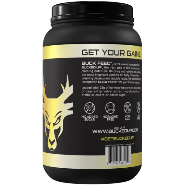 Bucked Up Buck Feed Protein is a high-quality, low-carb whey protein supplement formulated to support muscle growth, recovery, and fat loss. Each serving delivers 25 grams of hormone-free whey protein—primarily from fast-absorbing whey isolate—combined with Deer Antler Velvet Powder for added performance benefits. Designed to be easily mixed and digested, Buck Feed features no hormones, soy, or excess carbs, making it a clean and effective choice for athletes and everyday fitness enthusiasts alike. With a lineup of mouth-watering flavors, this protein offers both exceptional taste and nutritional performance at an accessible price point.