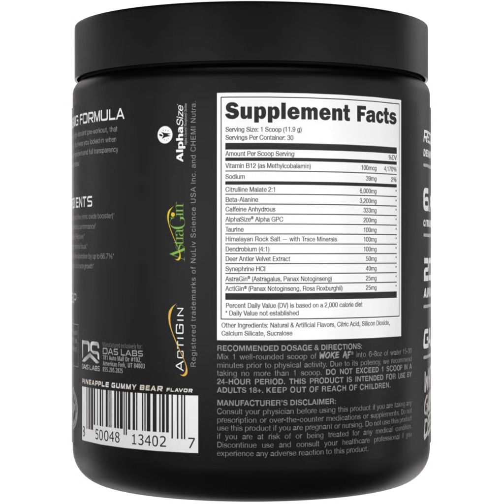 Bucked Up Woke AF Pre-Workout is an advanced, high-stimulant formula engineered for athletes and fitness enthusiasts seeking peak performance, intense focus, and rapid recovery. Each serving delivers a potent 333mg dose of caffeine and 6,000mg of Citrulline Malate to maximize blood flow, muscle pumps, and endurance throughout the most grueling workouts. Enriched with nootropics and 50mg of Deer Antler Velvet, Woke AF supports heightened mental clarity, strength, and muscle growth over time. This all-natural, certified organic pre-workout is available in a wide range of bold, unique flavors and comes in a convenient 30-serving tub. With a fully transparent, generously dosed label, Woke AF ensures you know exactly what you’re putting into your body to take your training to the next level.