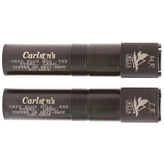 MID-RANGE & LONG RANGE CHOKE TUBES – Our Waterfowl Extended Choke Tubes are manufactured from 1704 stainless steel and designed to throw tighter and denser patterns than conventional choke tubes. These choke tubes feature a 25% longer parallel section in the choke thus throwing more consistent patterns. Each choke tube is knurled on the end to allow for quick and easy removal. Each choke tube has the constriction and size laser marked on the end and body for easy reference. – Steel shot may be used through these choke tubes with exceptional results. Do not shoot steel shot larger than BB or any steel load faster than 1550 FPS through the Long Range Constriction. Loads that exceed this size and speed should be used with the Mid Range choke tube. These chokes are backed by Carlson’s lifetime warranty.