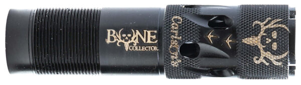 Carlson’s Ported Bone Collector Turkey Choke Tubes feature a super tight, pattern tested constriction that throws extremely tight patterns with all shotshell ammunition loaded for turkey hunting including lead, nickel-plated, copperplated, bismuth, Hevi-shot, tungsten, and TSS. A longer taper section to the constriction (parallel section of choke tube) insure tight patterns with less flyers. More pellets on target every shot! The Bone Collector Choke tubes are precision-machined from 17-4 heat treated stainless steel and feature a non-reflective matte black finish. Each choke tube constriction has been pattern tested and has thrown the best patterns with 4 through 10 shot. If you wish to use shot sizes larger than #4 shot, use a more open choke tube for optimum patterning. Remember to pattern your shotgun choke tube with the specific shot shell load you are going to be using. Different types and manufacturers of ammunition will throw different patterns from the same choke tube. Do not use any steel shot larger than #4, slugs, sabots, rifled slugs, & 00/000 buckshot through a Carlsons Turkey Choke.