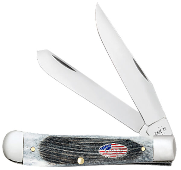 Our distinctive Gray Bone with extra Pocket Worn finishing, stars & stripes shield and easy-sharpening blades. The small Texas Toothpick features a Clip blade and has a small design that fits well into pockets or purses. The Clip blade is commonly used as a multi-purpose blade and preferred for detail work. This knife is fitted with stainless steel blades known for their high tensile strength, wear resistance, and toughness. Many prefer this steel for its edge retention and ease of re-sharpening. Since these are not stainless steel blades, a thin coat of oil applied on them after each use can help maintain their original finish. Comes conveniently packaged in a box. Made in Bradford, PA, USA from domestic and imported materials.