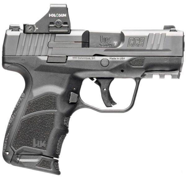 Heckler & Koch, MFG# 81001132, UPC: 642230268890, UOM: EA, CC9 Micro Compact, 9mm, 3.32″ Barrel, Optics Ready, Holosun 407K, Black, (2) 10-rd , HKUS, HKUSHG10, HKUSHGALL, HG10, HGALL