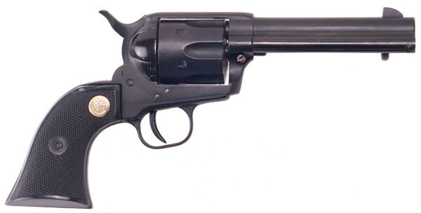 Cimarron ASPLINK1 Plinkerton 22 LR 6 Shot 4.75″ Matte Black Steel Barrel, Frame & Cylinder, Black Checkered Plastic w/Medallion Grip, Exposed Hammer