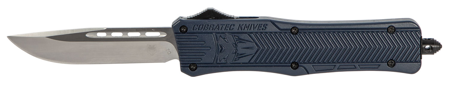 CobraTec Knives MNYCTK1MDNS CTK-1 Medium 3″ OTF Drop Point Plain D2 Steel Blade/NYPD Blue Aluminum Handle Features Glass Breaker Includes Pocket Clip