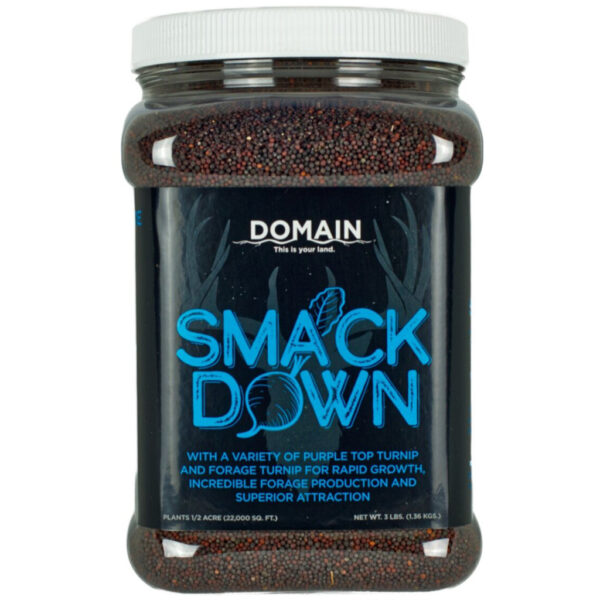 Smack down offers two varieties of turnips that are easy to grow and fast to mature. Not only will this grow rapidly, but the dual-purpose mix produces a large purple spherical root and leafy forage that can both be grazed, providing high levels of protein and energy. This combination makes smack down one of the most popular food plots you can plant for whitetail deer. These two varieties of turnip were carefully selected to provide you both warm and cold season food options and offer attractive forages no matter the temperature or time of year.