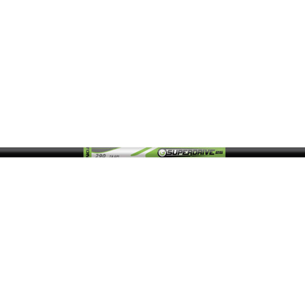 The Easton SuperDrive 25 Shafts in 290 spine are performance-driven carbon arrows tailored for 3D and indoor archery competition. Featuring a 25/64-inch outside diameter and a smooth matte black finish, these shafts are engineered for precision with a straightness tolerance of +/- .002 inch and a weight tolerance of +/- 1.0 grain. Each 32-inch shaft is constructed with multi-layer wrapped carbon fiber to provide strength and consistency. The shafts weigh 7.8 GPI and come with Super or G UNI bushings included. Inserts, points, and nocks are sold separately, allowing for customizable builds to match any competitive setup.