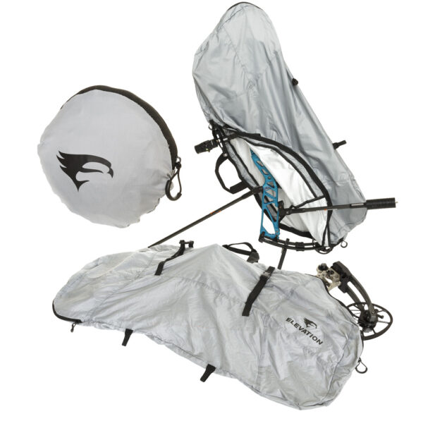 Protective, waterproof Bow Cover can store in compact, zippered self-pouch. Provides weather protection to your bow and sights.