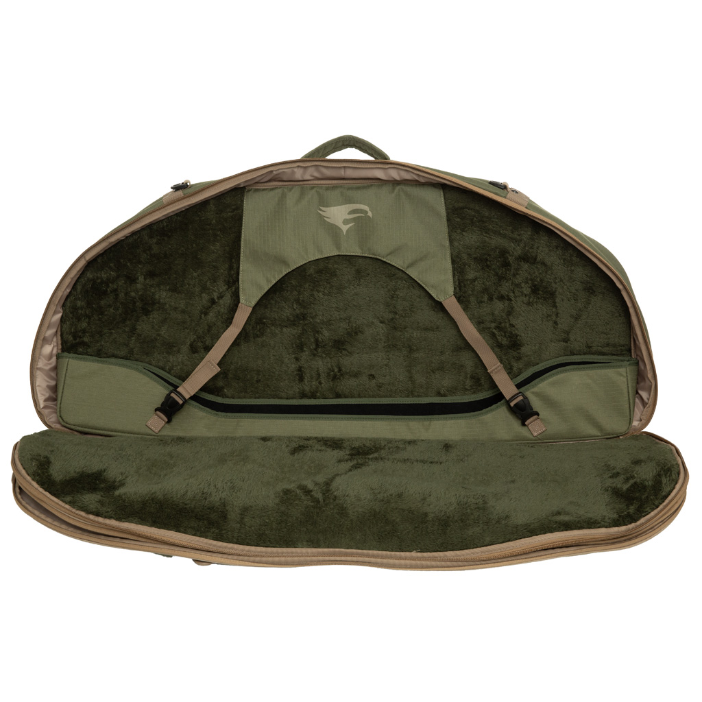 The V1 Topo Bow Case features a string and cam cradle with deep pile micro-raschel fleece lining and bow tie downs. The zippered fold-down lid pocket has three internal zippered mesh pockets and an external zippered slash pocket to handle a variety of hunting gear, in addition to an oversized arrow pocket on the front.