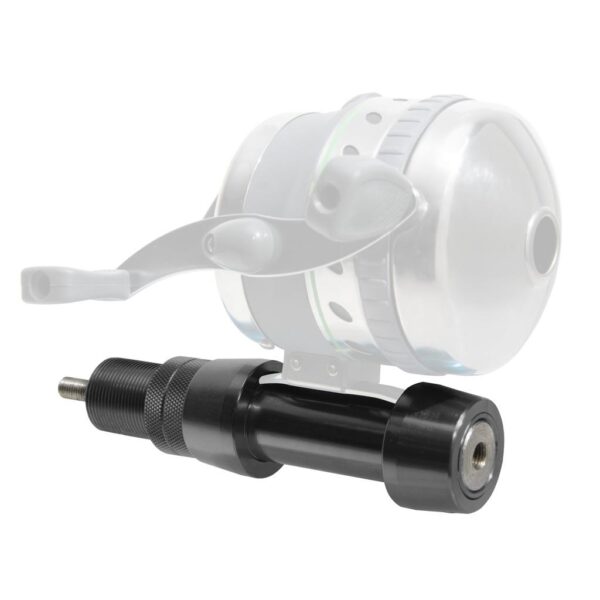 Bowfishing reel seat constructed of tournament grade aluminum. Mounts to front stabilizer bushing to securely attach a Spincast style reel.