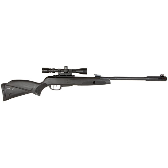 MECHANISM – IGT Mach 1 Technology. – Velocity: 1020 feet per second (fps) with PBA Platinum – 33mm cylinder high power plant – Single Shot – Break Barrel: Single Cocking System – Automatic Cocking Safety system – Barrel: Fluted Polymer Jacketed Steel with WHISPER FUSION Technology – Cocking Effort: 41 lbs – Trigger: – CAT: Custom Action Trigger – Manual Safety – RRR: Recoil Reducing Rail – STOCK – Stock: Tough All Weather molded Synthetic – Butt Plate: SWA (Shock Wave Absorber) Recoil pad with up to 74% recoil absorption – Cheekpiece: Thin cheekpad molded on each side for both Right hand and Left hand shooters – Checkering: Non-Slip texture design on grip and forearm – Rubberized grips – SIGHTS – Fiber optics front and rear sights – OPTICS – Scope Ramp: Raised Rail – Scope: 3-9×40 air rifle scope. – SPECIFICATIONS – 5 Year Warranty – Weight: 8.00 lbs – Length: 46.5 – Ammunition: Any .22 Pellet – Caliber: .22 – Trigger Pull: 3.74 lbs – Barrel Length: 18 in