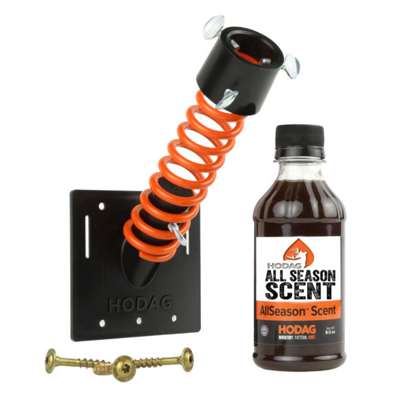 The HODAG Licking branch system includes the Licking Branch FlexPlate, 3 anchoring screws, and 8 oz. of All Season Scent. The Branch System allows you to create mock scrapes with the a branch at the perfect height and angle in the location you desire.
