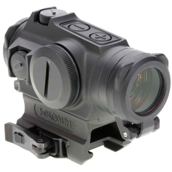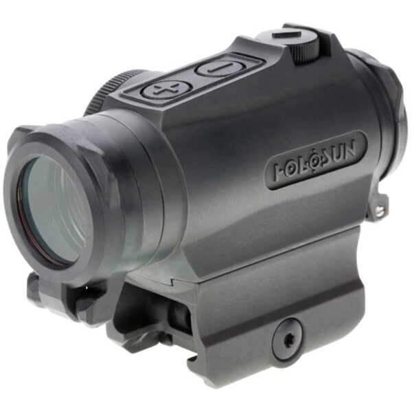 The Holosun HE515GT-GR is a compact yet highly durable 20mm micro sight built for hard-use rifle and carbine applications. Crafted from grade 5 titanium, it features a green Multi-Reticle System (MRS) with a 2 MOA dot and a 65 MOA circle, providing versatile aiming options. With 12 brightness settings, including 10 daylight and 2 night vision-compatible modes, this sight ensures adaptability in various lighting conditions. It incorporates Shake Awake technology, a Solar Failsafe for continuous operation, and a side-mounted battery tray for tool-free replacements, offering up to 50,000 hours of battery life. The quick-detach absolute co-witness mount, parallax-free design, and unlimited eye relief make this optic an excellent choice for professional and sporting users.