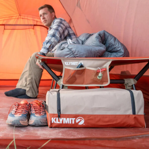 The Klymit Mesa Cot in Large Red offers a comfortable and elevated sleeping solution for campers who want to rest off the ground. Featuring a strong aluminum trapezoid frame and durable 300D polyester ripstop fabric, this cot provides excellent support and stability. The Easy Lever Lock system ensures quick setup and optimal fabric tension, while Collapse and Compact technology folds the oversized cot down to briefcase size for easy transport. Rounded feet protect tent floors, and a built-in gear pocket keeps essentials within reach. It’s a durable, smartly designed cot ready for any camping adventure.