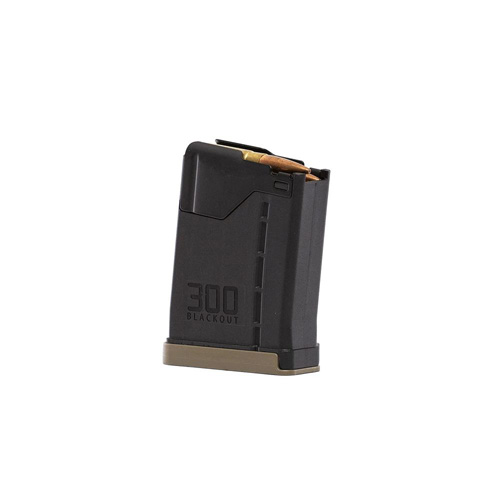 The L5AWM 300BLK magazine has been specifically engineered for use with heavy subsonic .300 Blackout ammunition, particularly with 200+ grain projectiles. The updated internal magazine geometry allows these longer heavier bullets to stack properly, which increases feeding reliability when compared to a traditional .223/5.56 magazine. The outside of the mag body is molded with distinctive .300 Blackout markings and the magazine ships with a contrasting flat dark earth floor plate for easy visual identification.