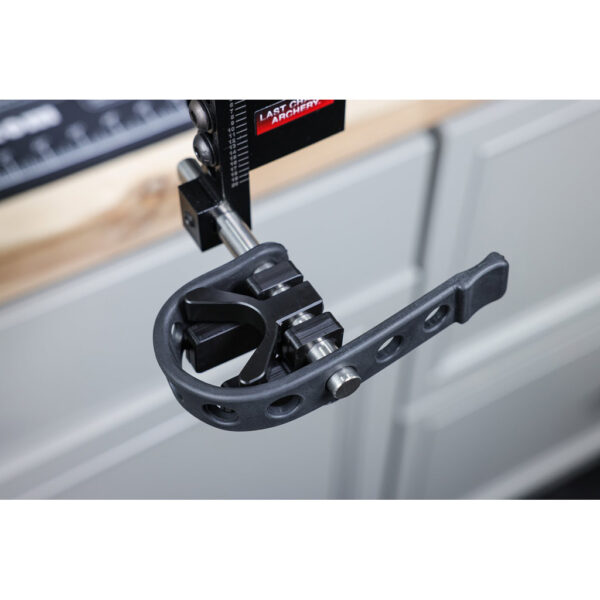 The Last Chance Precision Bow Holder is a highly versatile and user-friendly tool designed to secure bows for tuning and maintenance. Featuring adjustable, spring-loaded side plates and a custom bow gripper that mimics hand contact points, it keeps the bow level and secure during use. Height and depth adjustments, combined with alignment marks, ensure perfect alignment with the LCA Draw Board or other setups. Compatible with the original LCA Draw Board and the new Draw Board 2.0, the holder can be mounted to a table or inside LCA bow presses, offering options in Standard and Ultimate models. Durable construction, including a steel elevation block and stainless steel adjustment rod, makes this an essential tool for precision bow tuning.