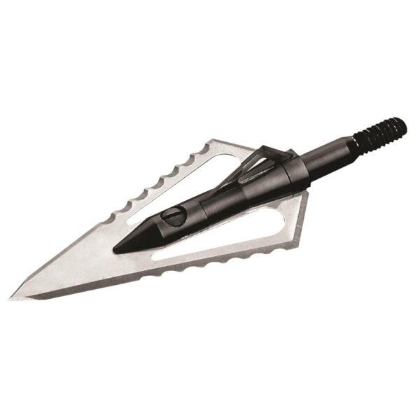 Incorporates a chiseled serration for more effective cutting inside an animal, made from knife-grade stainless steel and is shaving sharp right out of the package, precision-machined and spin-tested for perfect flight every time.