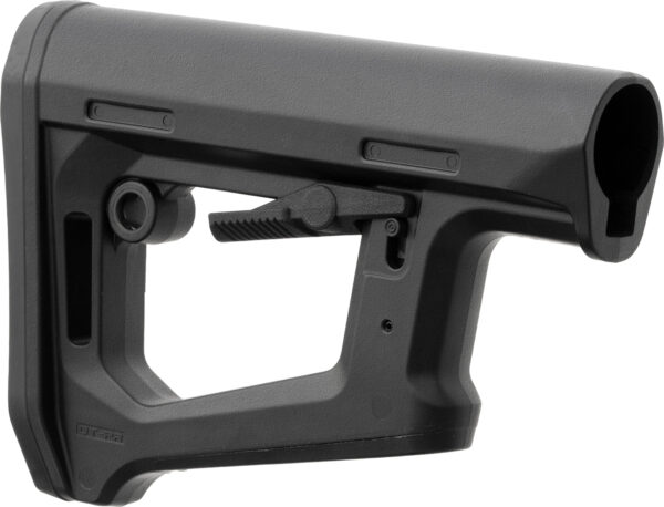 The DT-PR stock is the Precision Rifle (PR) variant of our new Dual-Tension (DT) series of carbine stocks. It incorporates Magpuls proprietary, patent-pending DT adjustment system, mitigating play between the buffer tube and the stock, resulting in a tighter fit across the stocks entire length of pull. It also minimizes snagging of facial hair and skin where the shooters face contacts the stock.