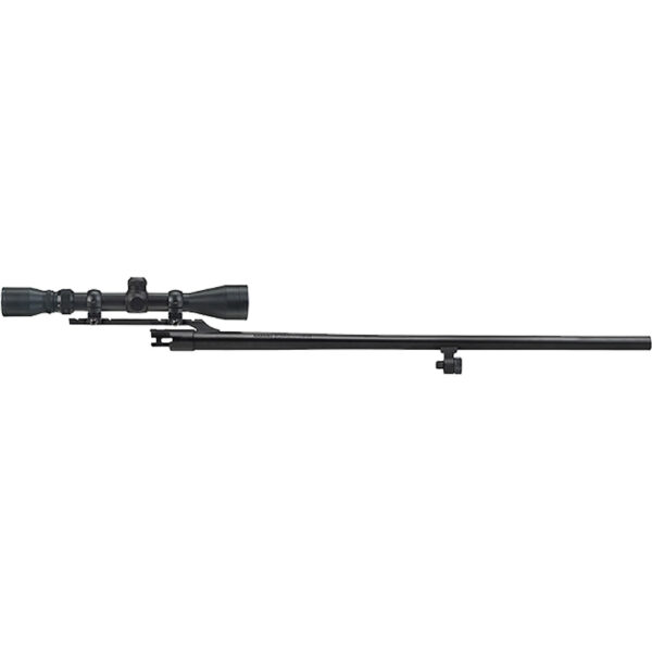 This Mossberg slug barrel is a 24” fully ported rifled barrel for 12 gauge Mossberg 535 ATS models. This package also includes a Bushnell Banner 3-9x32mm scope attached to the integrated cantilever mount. Made of steel with a blued finish.