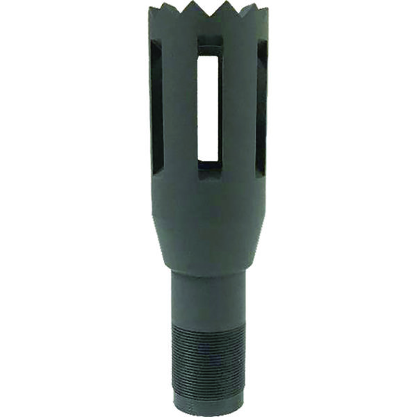 Add stand-off capability to any 12 gauge Accu-Choke barrel. Serrated teeth at the muzzle provide solid purchase when placed against a variety of surfaces. Angled ports vent away gases from the muzzle while also reducing muzzle flash.