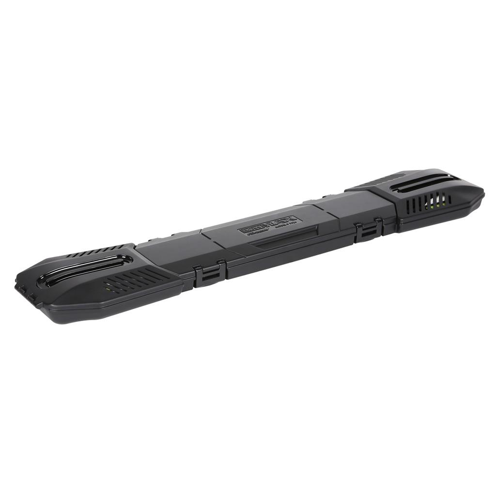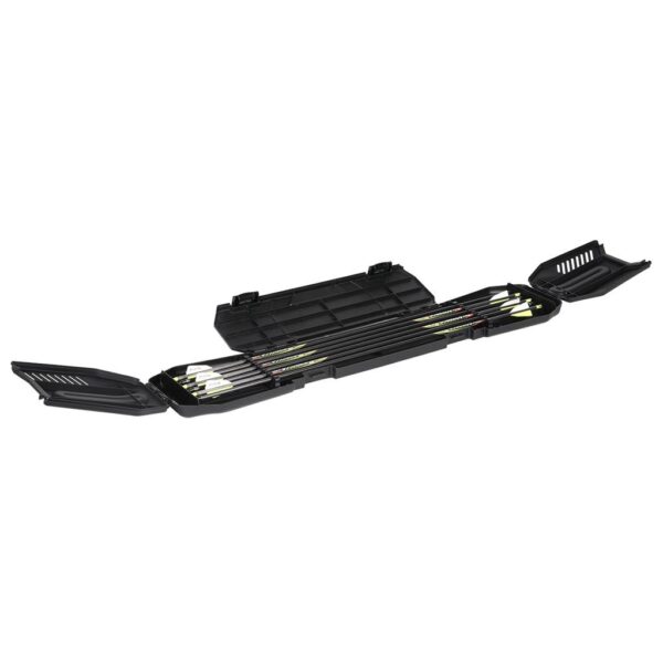 Hard arrow case constructed of heavy duty material. Features durable H latch closures, internal storage for small accessories and integral slots for lashing straps. Holds 6 arrows up to 32.75in. Exterior measures 37in.x7.75in.x2in.