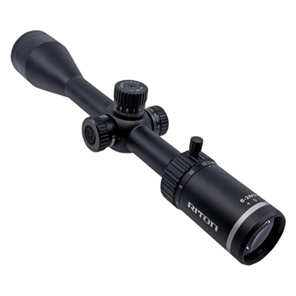 The 1 Conquer 6-24×50 is a powerful optic providing features and enhancements at a fraction of the cost. The scope features approximately 67 Minutes of Angle (MOA) of internal elevation adjustment as well as an integrated throw lever Riton R3 Zero Stop turrets and a Riton ranging reticle.