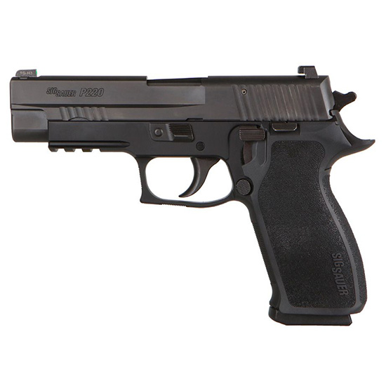 OFF-DUTY from SIG SAUER is our way to support those who protect serve and defend our communities and our country. OFF-DUTY offers exclusive pricing on a selection of firearms and a variety of SIG SAUER products providing qualified American Professionals with the best equipment available. – The modern SIG SAUER pistol story began with the P220. In 1976 the .45 ACP P220 was introduced and quickly became recognized as one of the most accurate 45s right out of the box. Since that time the P220 has earned an enviable record in hot spots around the world. The P220 features a stainless steel slide machined from barstock and coated with a durable wear-resistant Nitron finish light-weight alloy frame with integral accessory rail and the SIG SAUER four-point safety system of decocking lever patented automatic firing pin safety block safety intercept notch and trigger bar disconnector. – CALIBER: 45 Auto – MAGS INCLUDED: (2) 8rd Steel Mag – SIGHTS: SIGLITE – PISTOL SIZE: Full-Size – OVERALL LENGTH: 7.7 in [196 mm] – OVERALL WIDTH: 1.3 in [36 mm] – HEIGHT: 5.5 in (140 mm) – BARREL LENGTH: 4.4 in (112 mm) – WEIGHT: 30.4 oz [862 g] – SIGHT RADIUS: 6.3in [160 mm] – ACCESSORY RAIL: SIG Rail – TRIGGER ACTION: DA/SA – TRIGGER TYPE: SRT – GRIP TYPE: E2 – GRIP COLOR: Black – BARREL MATERIAL: Carbon Steel – FRAME FINISH: Hard Coat Anodized – FRAME MATERIAL: Alloy – SLIDE FINISH: Nitron – SLIDE MATERIAL: Stainless Steel