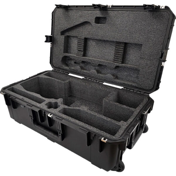 SKB iSeries Injection Molded Mil-Standard Waterproof Cases are molded of ultra high-strength polypropylene copolymer resin, featuring a gasket-sealed, water and dust tight, submersible design (MIL-STD 810H) that is resistant to corrosion and impact damage. Standard features include a molded-in hinge, padlock loops, Trigger Latch System, snap-down rubber over-molded cushion grip handle, automatic ambient pressure equalization valve (MIL-STD 810H), and resistance to UV, solvents, corrosion, fungus and impact damage (MIL-STD 810H).