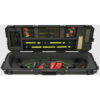 Injection molded case has four SKB patented trigger latches, four reinforced padlock locations, cushioned snap down handles on three sides and recessed, in-line skate style wheels, to ensure that transporting your gear around the world is both worry and trouble free. The interior of the case features a custom foam insert and repositionable tie downs for secure fit and cushioning of your gear and a water jet cut foam arrow system that holds up to a dozen arrows.