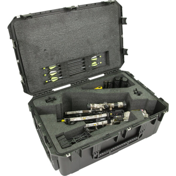Constructed to SKB’s high standards with Injection Molded Mil-Standard materials, this case is a bastion against the elements, boasting a waterproof, dust-tight, and impact-resistant design that meets MIL-STD 810G standards. Its airtight seal, cushioned by a gasket and secure trigger release latch system, ensures your crossbow stays locked in under any conditions. The case features in-line skate style wheels and a pull-out handle for effortless transport across any terrain. Inside, custom-cut high-density foam hugs your crossbow, ensuring a snug fit and providing optimal protection against jolts and jounces.