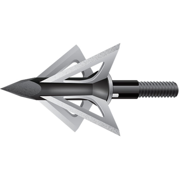 Super-short fixed blade broadhead designed to rival the flight and cutting diameter of mechanical heads. Low profile design handles the speeds of high performance bows. Blade thickness: .035”, Cutting Diameter: 1 1/8”.