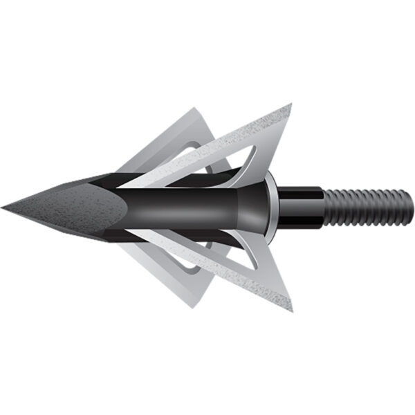 Super-short fixed blade broadhead designed to rival the flight and cutting diameter of mechanical heads. Low profile design handles the speeds of high performance bows. Blade thickness: .035”, Cutting Diameter: 1 1/8”.