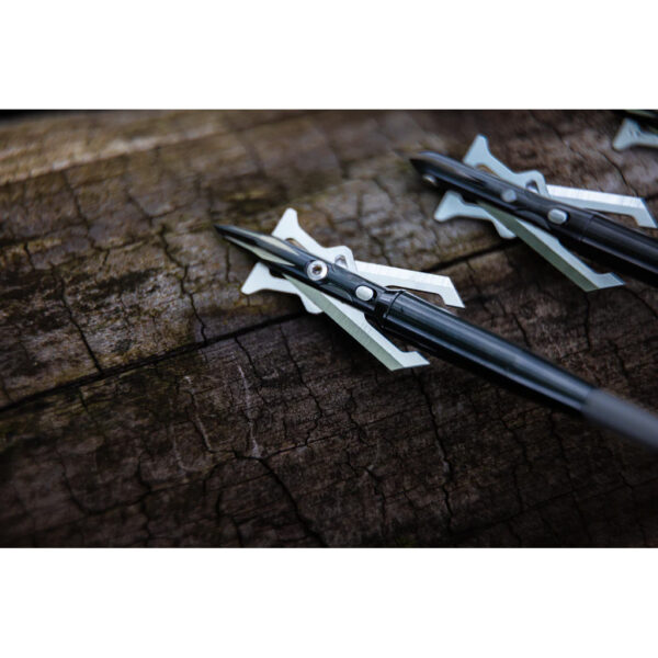 The Titanium Broadhead is engineered with a Grade 5 titanium ferrule and a PVD-coated chisel tip, this broadhead provides maximum impact stability. Its .039 stainless steel blades deliver superior penetration, a 2” cut, and structural reliability. Speed Reactive Technology enables full deployment with 80% less force and zero failure at high speeds.