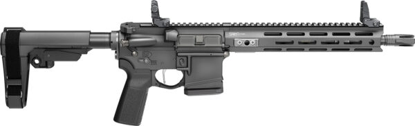 The Saint Victor features a free float aluminum handguard w/SA locking tabs and M-LOK; SB Tactical SBA pistol brace; 6-position receiver extension; B5 Systems Type 23 P-Grip; Radian Raptor Ambidextrous charging handle; QD receiver end plate; 45-degree ambidextrous safety; B5 systems polymer trigger guard and a low profile, pinned gas block. Includes one 10rd Magpul PMAG Gen M3.