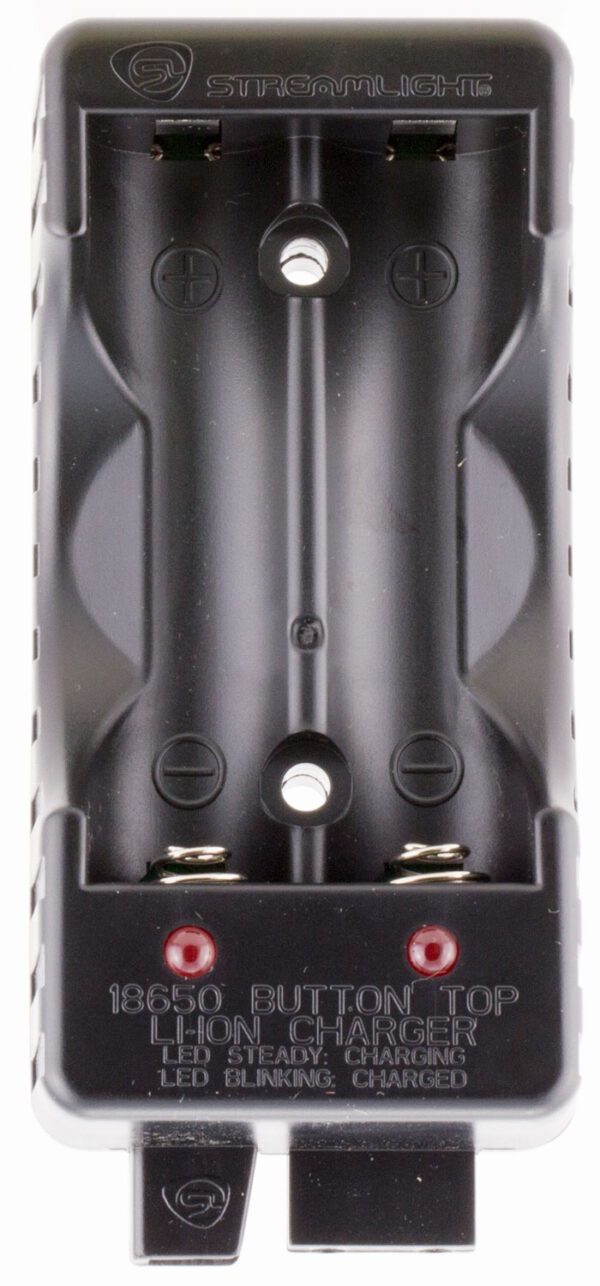 Streamlight Battery charger charges two 18650 li-ion batteries at a time. The charger features 2 charging bays, with a single bay priority to speed up the charge time.