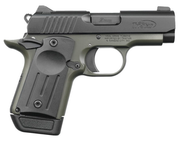 Model: Protoge X – Caliber: 9MM LUGER – Finish: ODG/Black – Action: Single Action – Grips: Black Grips – Sight: Fixed – Barrel Length: 3.22 – Overall Length: 6.2 – Weight: 16.9 oz – Capacity: 7+1 – # of Mags: 1 – Safety: Thumb safety – Features: Single Action Manual Thumb Safety 3-Dot Sights; Extended Magazine Baseplate