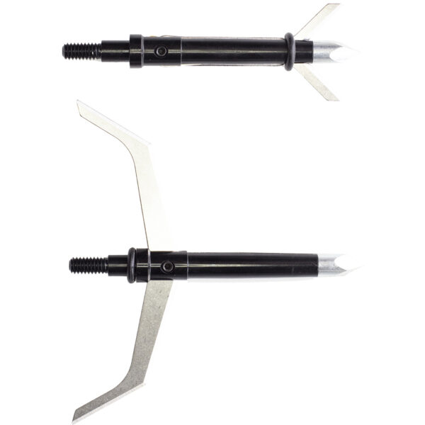 These broadheads feature super strong 32/1000 spring steel blades and hardened bone crushing tips that are easy to replace. All Vortex broadheads use a safety o-ring in order to keep the blades closed during flight.