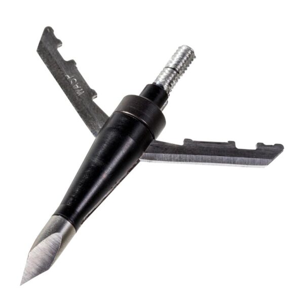2-blade expandable broadhead that features an o-ring blade retention system and a 2in cutting diameter. Field point accuracy without the worries of mechanical failure.