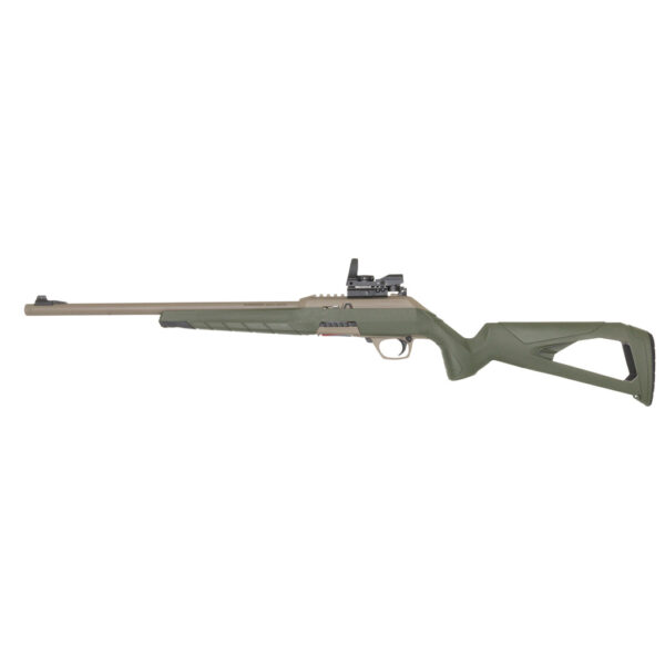 The Wildcat SR is a suppressor ready rimfire rifle with a threaded muzzle. This rifle has a lightweight composite stock that keeps the weighs to 4 pounds. It has a 16.5” barrel made of chromoly steel with a recessed target-style crown. The rotary magazine features a last round bolt hold open.